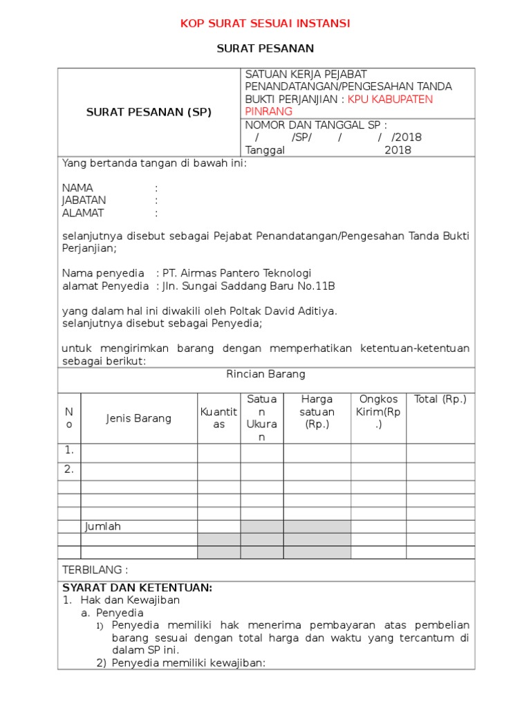 Surat yang dikenal dengan sebutan letter of order merupakan jenis surat yang tidak terlepas dari suatu perusahaan, karena berkaitan dengan proses operasi perusahaan. Yuk, lihat saja contoh surat penawaran barang yang benar di sini! Contoh surat pesanan barang elektronik. Menulis surat penawaran barang tidak boleh sembarangan, kawan kledo bisa mengikuti cara dan contoh surat penawaran barang yang ada di sini. Contoh surat permohonan bantuan barang. Penggunaan barang elektronik sekarang ini sudah semakin meningkat, baik itu di lingkungan perusahaan dan instansi, maupun lingkungan rumah tangga. Related images with contoh form pre order po solar ~ peluang usaha. Jika anda menerima pesanan barang elektronik, maka sebaiknya kirimlah dengan menggunakan jasa. Anda bisa menyimak contoh surat penawaran barang berikut ini terlebih dahulu. Purchase order atau po adalah daftar pesanan atas suatu barang dari pemesan ke suplier. Contoh surat pengiriman barang elektronik. Source image contoh surat order from www.peluangusaha.web.id. Surat niaga pengiriman barang dibutuhkan sebagai surat jalan pengiriman barang.